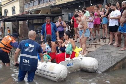 Rio: sem infraestrutura na cidade para suportar chuvas, famílias precisaram ser resgatadas de bote